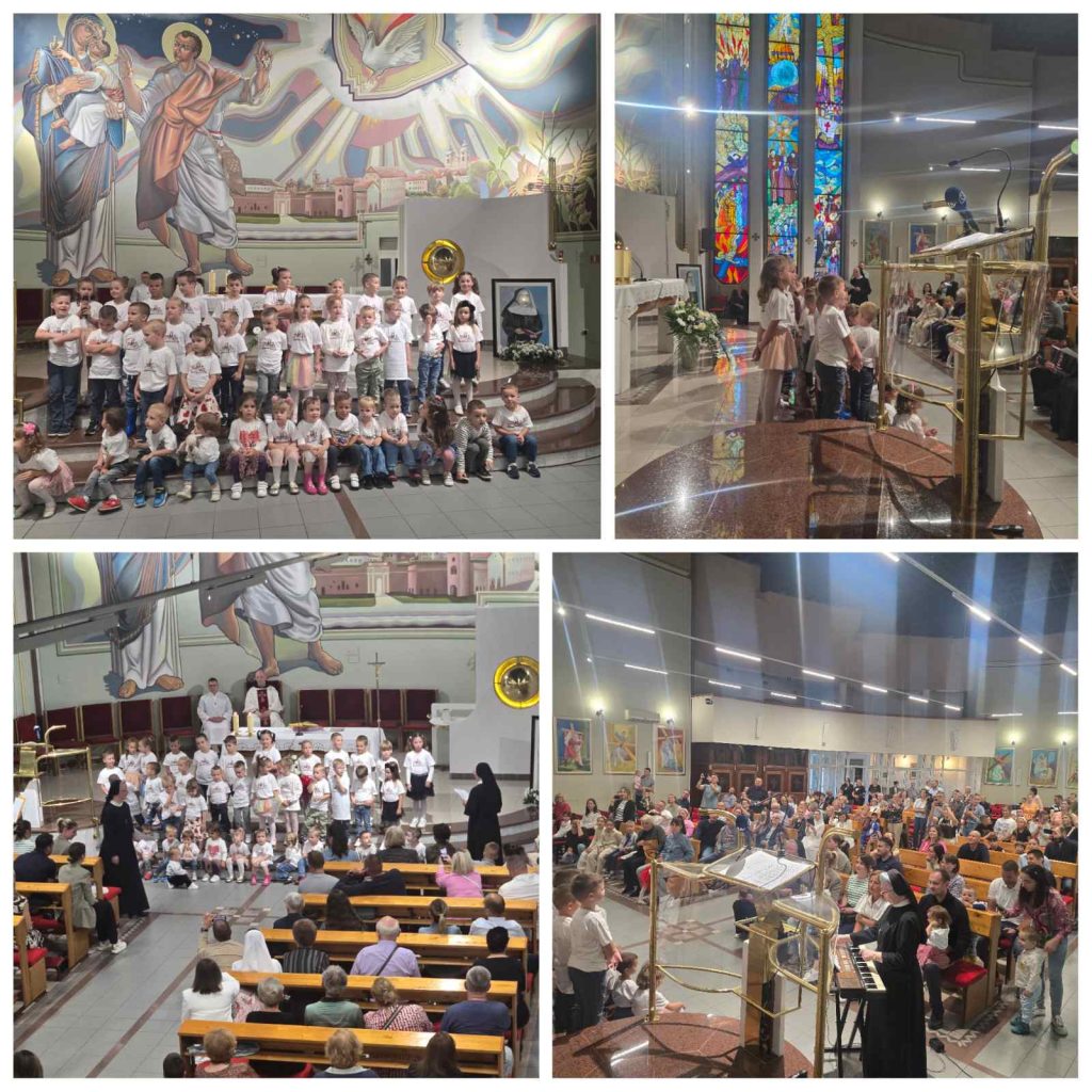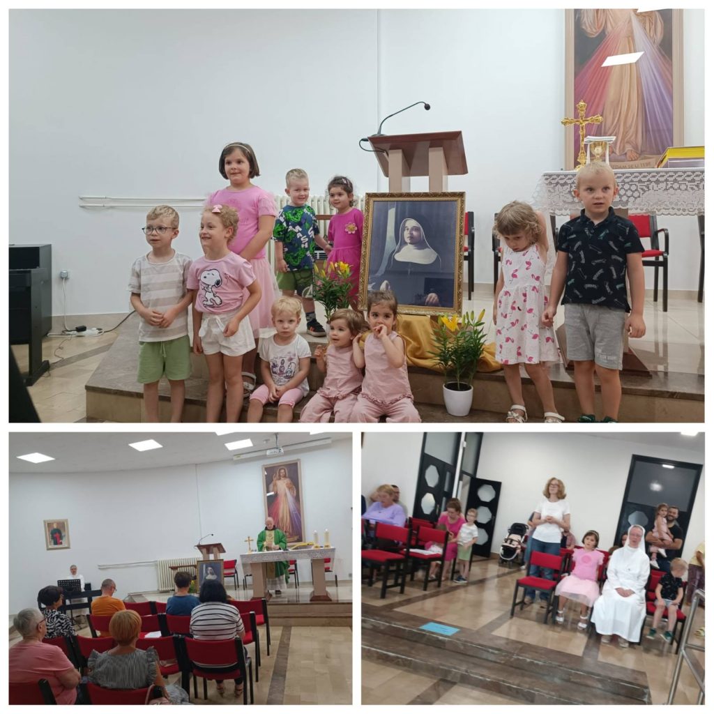 Sam dan blagdana proslavile smo svečanom sv. misom koju je predslavio naš župnik fra Dragutin Bedeničić uz prisutnost djece koja sada pohađaju vrtić Marija Petković, kao i onih koji su ga prije pohađali, te njihovih roditelja i naših župljana koji su se odazvali u velikom broju. Župnik se osvrnuo na dan proglašenja naše blaženice, te nas zapitao jesmo li ponosni što imamo blaženicu iz svog naroda, te koliko smo zahvalni Bogu što imamo blaženike i primamo tolike milosti po njihovom zagovoru. Potaknuo je roditelje na razmišljanje o tome koliko je važno ostati vjeran svom pozivu, primajući dar novoga života u svojoj djeci. Na kraju misnog slavlja sestre i odgojiteljice su pripremile s djecom nekoliko recitacija i pjesama u čast našoj blaženoj Mariji, a na radost svih prisutnih. Glazbeni dio pripremila je i svojim sviranjem popratila s. M. Helena Bakula, te je također i animirala pjevanje na svetoj misi. Bogu hvala na milosti što nam daruje po zagovoru Blažene Marije Propetog Isusa Petković.