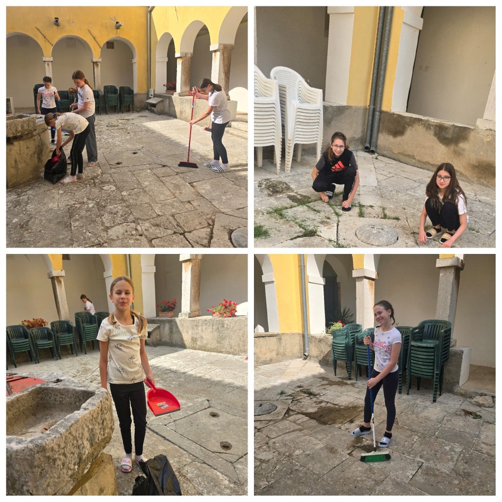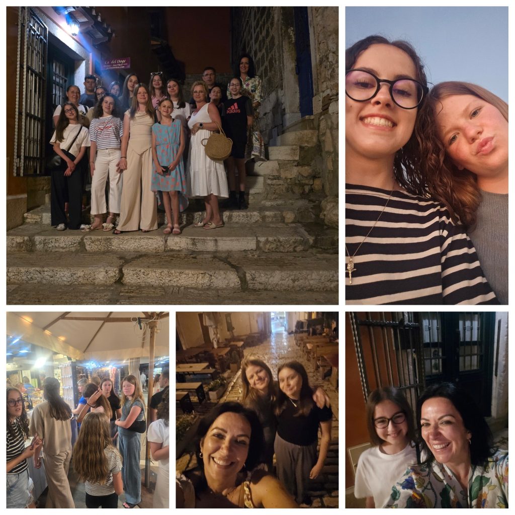 Sljedeće jutro pokazali smo dobar duh zajedništva. S obzirom da je bila jaka oluja odlučili smo pomoći fratrima u čišćenju samostana i dvorišta. Bilo nam je jako drago što smo mogli pomoći. Nakon toga uslijedio je zaslužen odmor na plaži, gdje smo se družili, kupali ,igrali čak smo i na pedalinama bili. Dva dana proveli smo na na plaži uživajući u suncu i kupanju. A kada je pala noć odlučili smo se ići prošetati kroz Rovinj, prekrasno!
