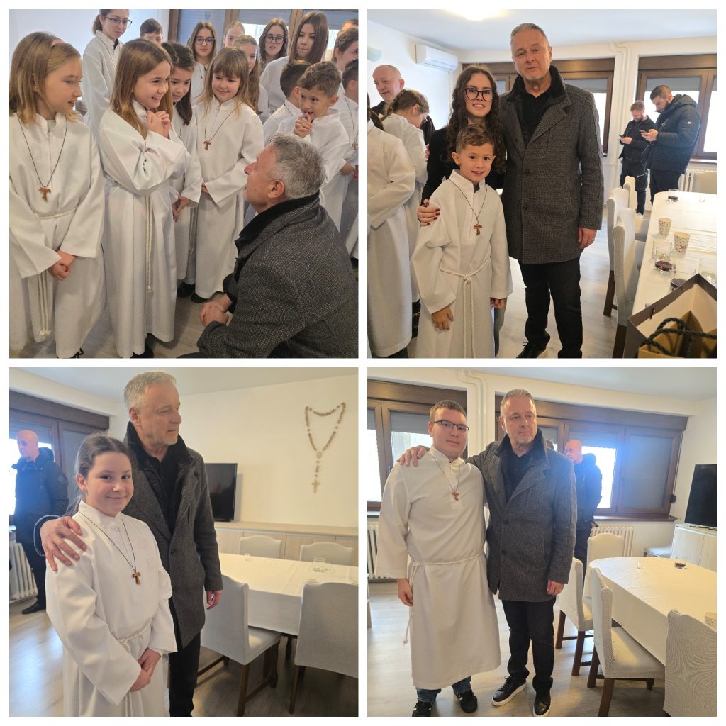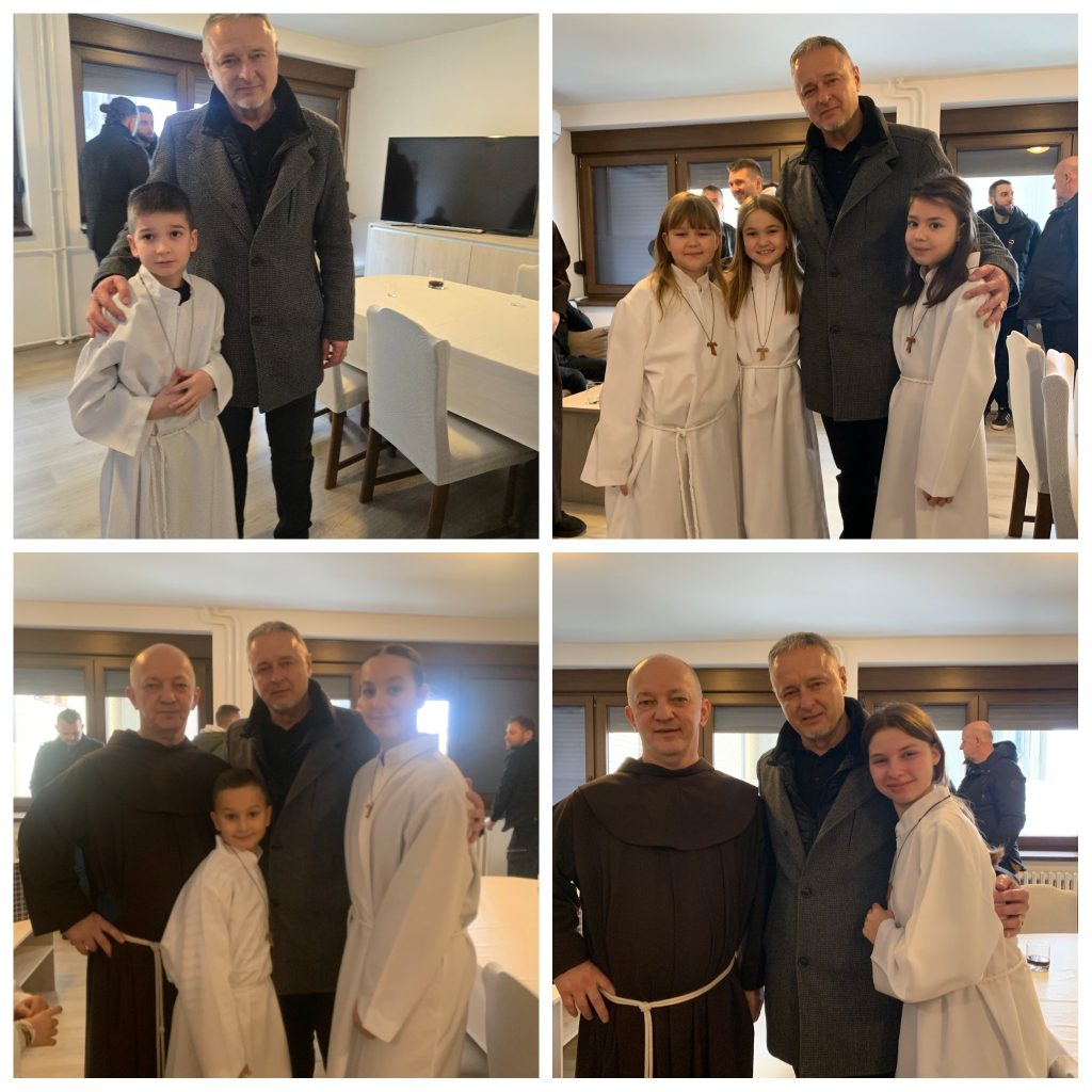 U nedjelju 23.11.2025 na svetoj misi u 10 sati našu župu sv. Obitelji posjetio je g. Marko Perković Thompson. Došao je zajedno s sa svojim menadžerom g. Zdravkom Barišićem i članovima benda. Svetu misu predslavio je župnik fra Dragutin Bedeničić koji je na kraju mise pozdravio g. Perkovića te mu zahvalio ne samo što nam je došao u posjet nego i za sve što kroz svoju glazbu čini za promicanje pravih vrijednosti a to su vjera, ljubav i domovina. Ujedno je zahvalio i Tatjani Šargač koja je organizirala posjet te naglasio da je Thompson došao na misu kao vjernik i kako bi posjetio naše ministrante. Nakon misnog slavlja u samostanskoj blagovaonici nastavilo se druženje s ministrantima uz pjesmu, razgovor i fotografiranje. Ministranti, njih 27 oduševljeni su iznenađenjem te su radosna srca otišli svojim domovima svjedočeći koliko ih Bog ljubi.